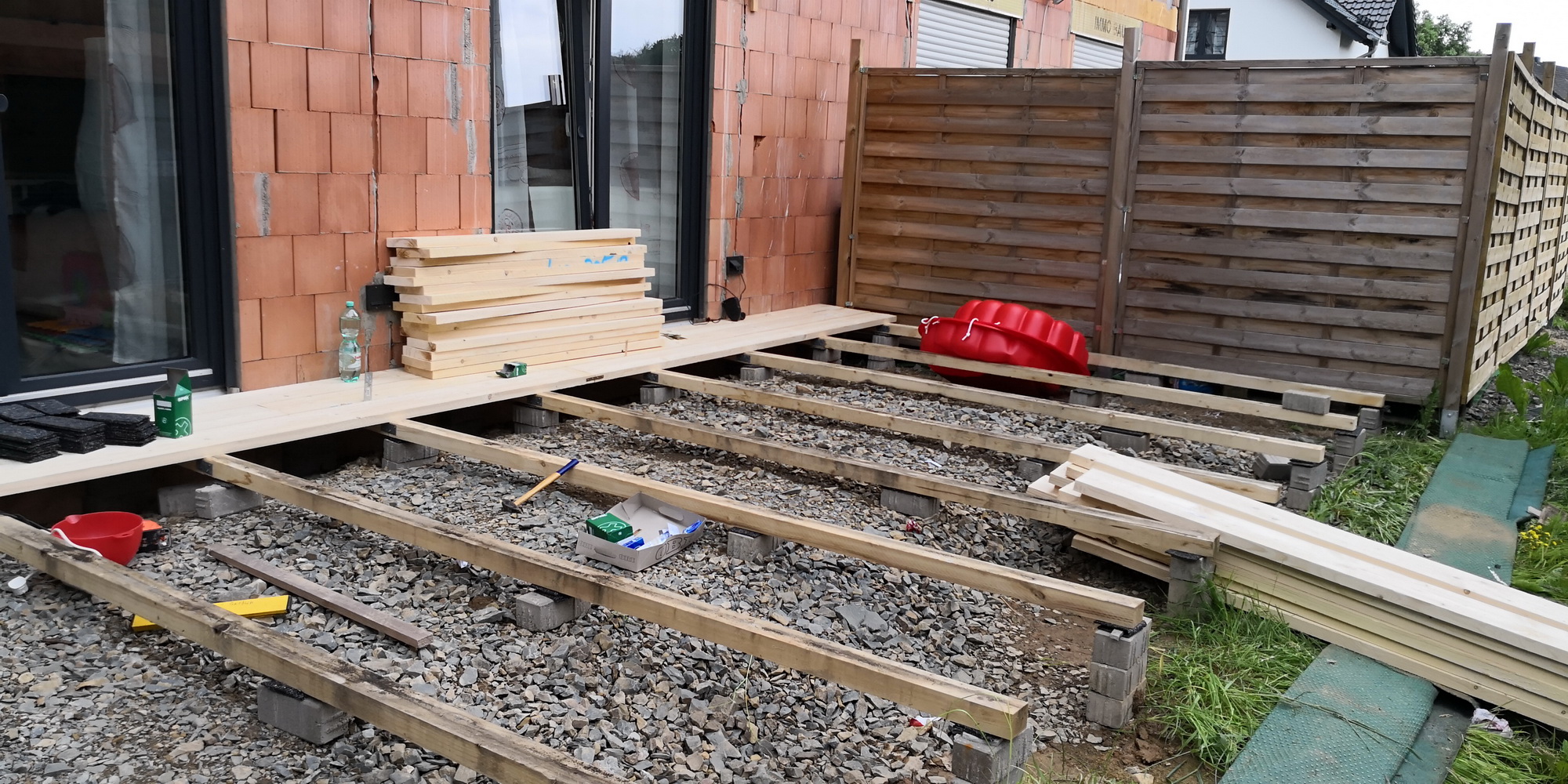 Auf der Terrasse wurde auch grob Schrotter verteilt.