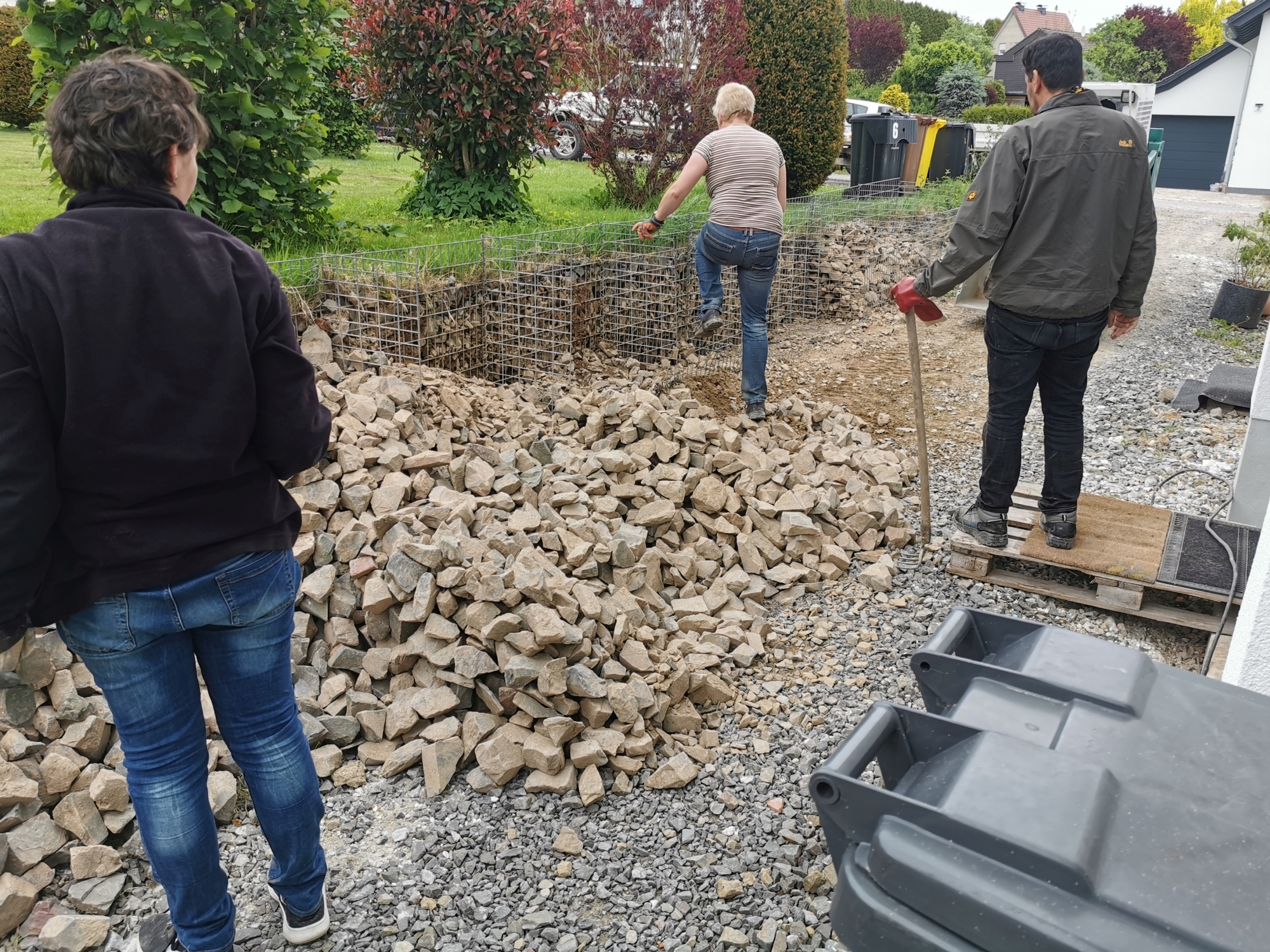 Für die Pflasterarbeiten vor der Haustür mussten am 21.05. und den folgenden Tagen die Gabionen "entfernt" werden.